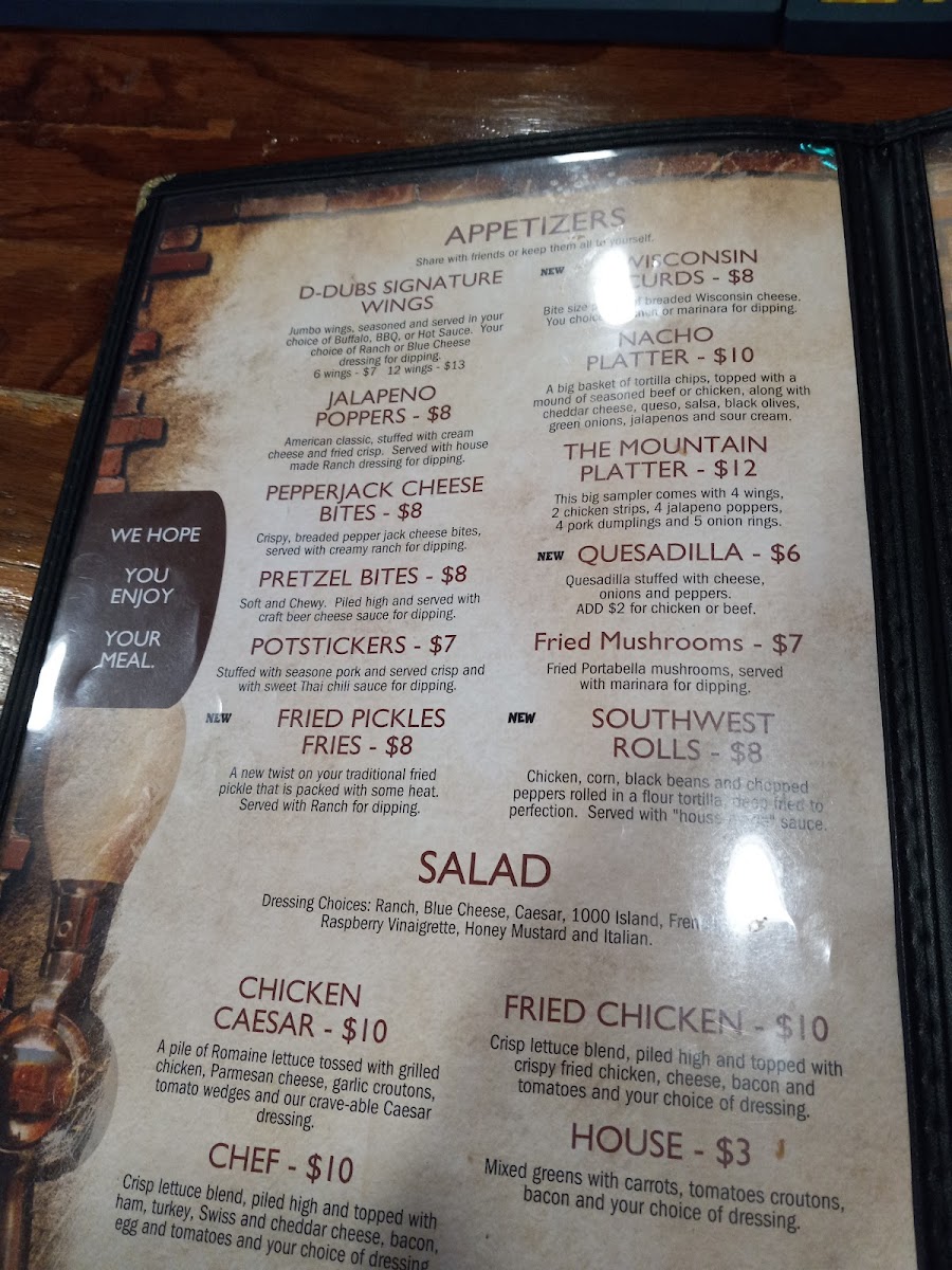 D-dubs Bar And Grill Menu
